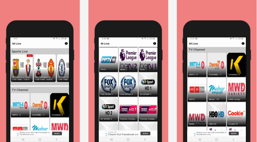M Live App includes all World Football Events Live Stream , Daily Sports News And Myanmar Channel etc…. Free Download Appp !